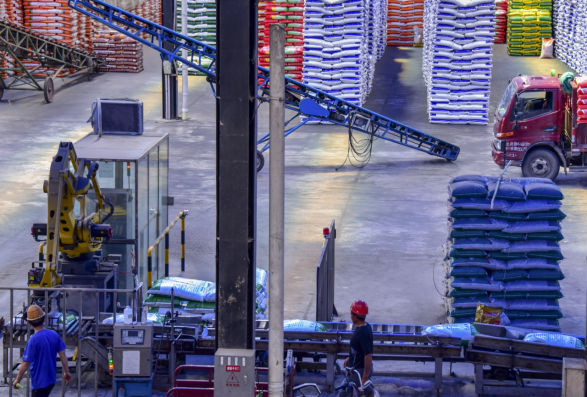 由于环保形势严峻,县区对运输车辆进行严格管理,为了保证公司成品、原料车辆的及时装卸,公司特成立工作小组,每天进行车辆信息登记,第一时间发送政府部门送审、通过。目前,公司高塔、滚筒线生产昼夜不停,车辆运输井然有序,厂区一片繁忙,原料充足、库存充足,各含量品种齐全,新品高品质高塔硫酸钾肥料正在生产中,为您的丰收保驾护航!